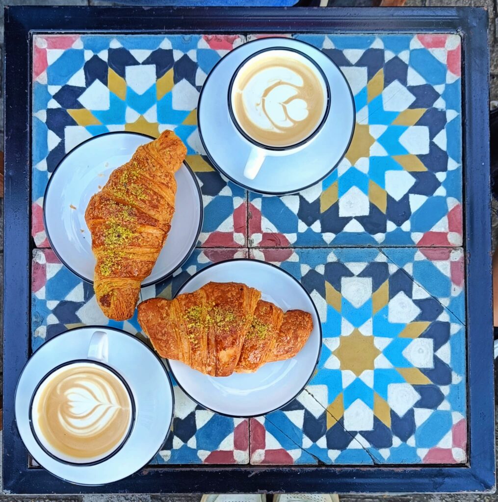 Desayuno en Ben Rahim. Fue el penúltimo día del viaje y nos recordó lo que era un buen café, tan complicado de encontrar en Túnez.