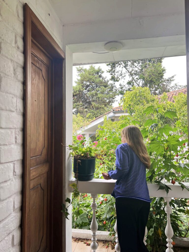 El patio de Apartamento Otoronogo, un sitio ideal apra dormir en Cuenca en 2 días. Ahí mismo vimos colibríes!
