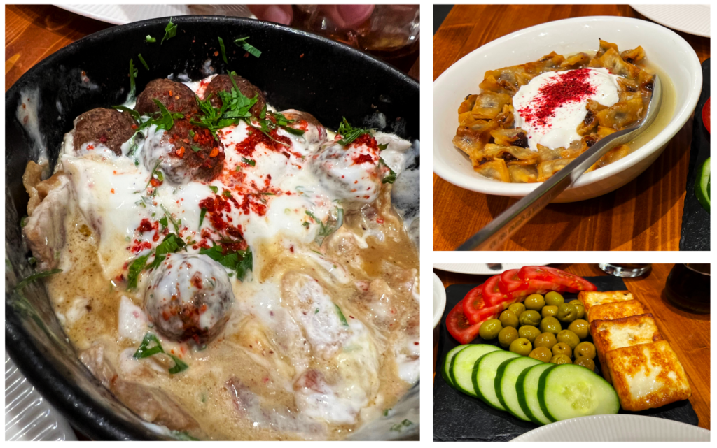 Restaurante Baron: para cenar optamos por este libanés, aunque tiene platos tradicionales armenios también. Tomamos un queso frito con pepino y tomate; una especie de albóndigas en salsa y unos saquitos de masa (tipo dumpling) rellenos de carne, muy ricos. Este último plato se llama Mante y es muy popular en Kazajistán, Uzbekistán, Turquía, Afganistán y por regla general en todas las gastronomías de Asia Central. Aunque también con muy buenos precios, en este pagamos algo más (24,84€ en total).