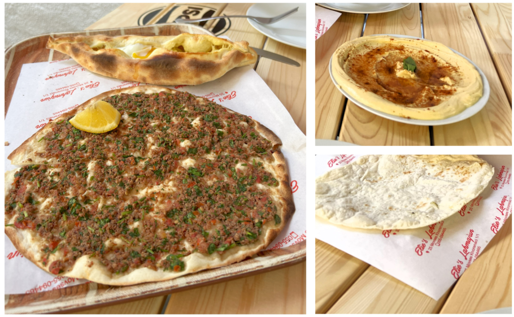 El primer día, tras una mañana calurosa, paramos a comer en la terraza de Elie’s Lahmajun, con unos precios súper competitivos, cerca de la plaza de la república y unos platos muy ricos. Fue nuestro primer contacto con la comida armenia. Pedimos el Elie’s Lahmajun, que es una especie de pizza armenia, nuestro primer adjarian khachapuri (que sería parte de nuestra dieta en Georgia durante el viaje) y hummus. Pagamos 8,50€ en total!!