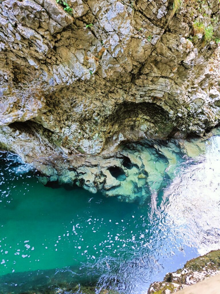 Nosotros la vimos en el tercer día de viaje, después de dos días conociendo los Alpes julianos. El recorrido por la garganta es indudablemente bonito, aunque no nos sorprendió demasiado. Ese color del agua tan llamativo lo llevábamos viendo desde que entramos en Eslovenia por Kanal ob Soci, y, en muchas ocasiones, sin pagar.