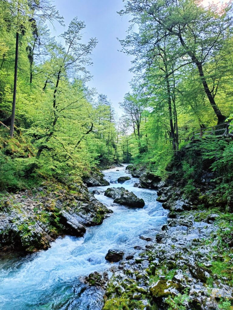 La Garganta Vintgar es una impresionante garganta natural que ha sido moldeada por el río Radovna a lo largo de miles de años, dando lugar a paredes que alcanzan alturas de hasta 100 metros y, en su interior, a rápidos, pozas cristalinas y pequeñas cascadas.