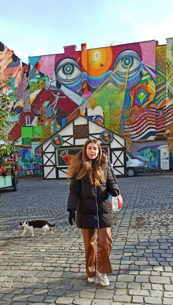 Mucho menos conocida que Piata Sfatului, hay otra plaza que merece la pena visitar en Brasov, la Piata Sfantul Ioan. Volviendo a nuestra experiencia navideña, aquí es donde se ubica una enorme pista de hielo al aire libre durante el invierno. La plaza lleva el nombre de la iglesia que alberga, la Iglesia de San Juan, Sfantul Ioan en rumano. Aunque he de decir que tiene entre poco y nada de encanto. Lo que sí que nos gustó fueron los murales que decoran algunas de las paredes de los alrededores, muy originales!