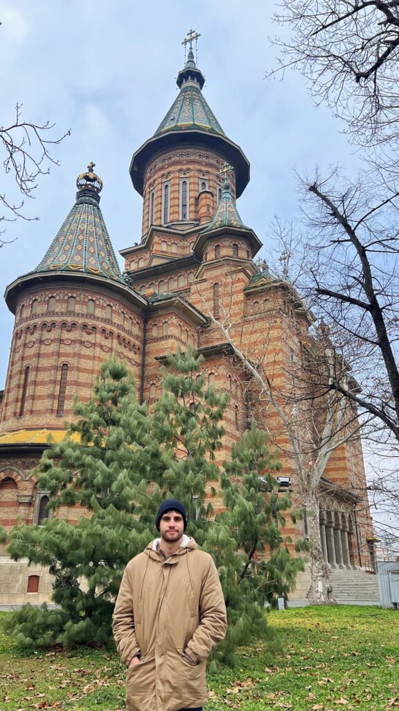 Si en el extremo norte de la plaza decíamos que estaba el bonito edifico de la ópera, en el extremo sur está, sin duda, el gran atractivo del lugar: la Catedral Metropolitana de Timisoara. Está dedicada a los Tres Santos Jerarcas de la Iglesia Ortodoxa, Basilio el Grande, Gregorio el Teólogo y Juan Crisóstomo. De hecho, algo que nos llamó la atención durante nuestras visitas es que las catedrales tuviesen tres puertas principales, lo que se debe a la existencia de los Tres Santos.