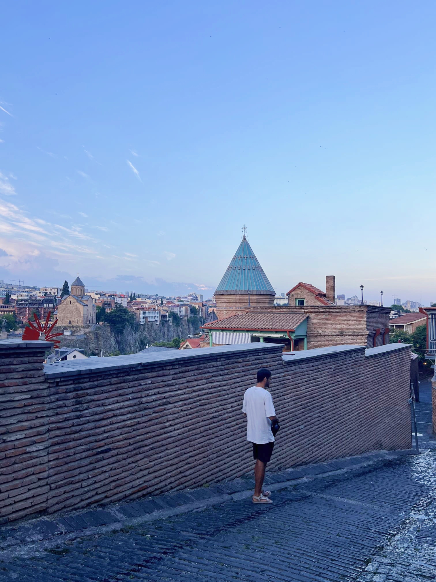 Pese a que en algún momento del día la intención fue ver atardecer desde lo alto de la colina, finalmente nos vino mejor subir antes. Por eso, eran poco más de las siete cuando emprendimos la bajada. Esta vez prescindimos del teleférico y lo hicimos andando, ya que la intención era aprovechar para callejear por Old Tbilisi.
