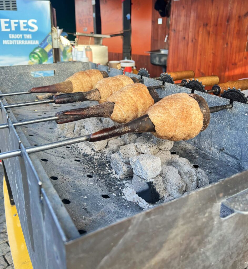 Preparando el tradicional Chimney Cake.