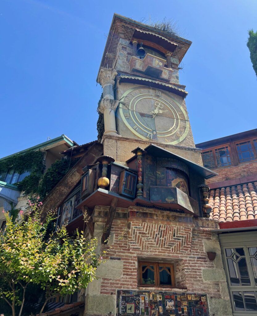 Justo al lado de la Basílica de Anchiskhati encontrarás la Torre del Reloj, una de las atracciones más peculiares y fotogénicas de Tbilisi. Pese a su apariencia algo rústica, es un edificio muy moderno, construido por Rezo Gabriadze en 2010, un célebre titiritero, director y artista georgiano. De hecho, su localización se debe a que detrás está el teatro que lleva su nombre, por lo que interpretó que colocar el famoso monumento aquí sería una genial extensión creativa de su universo artístico.