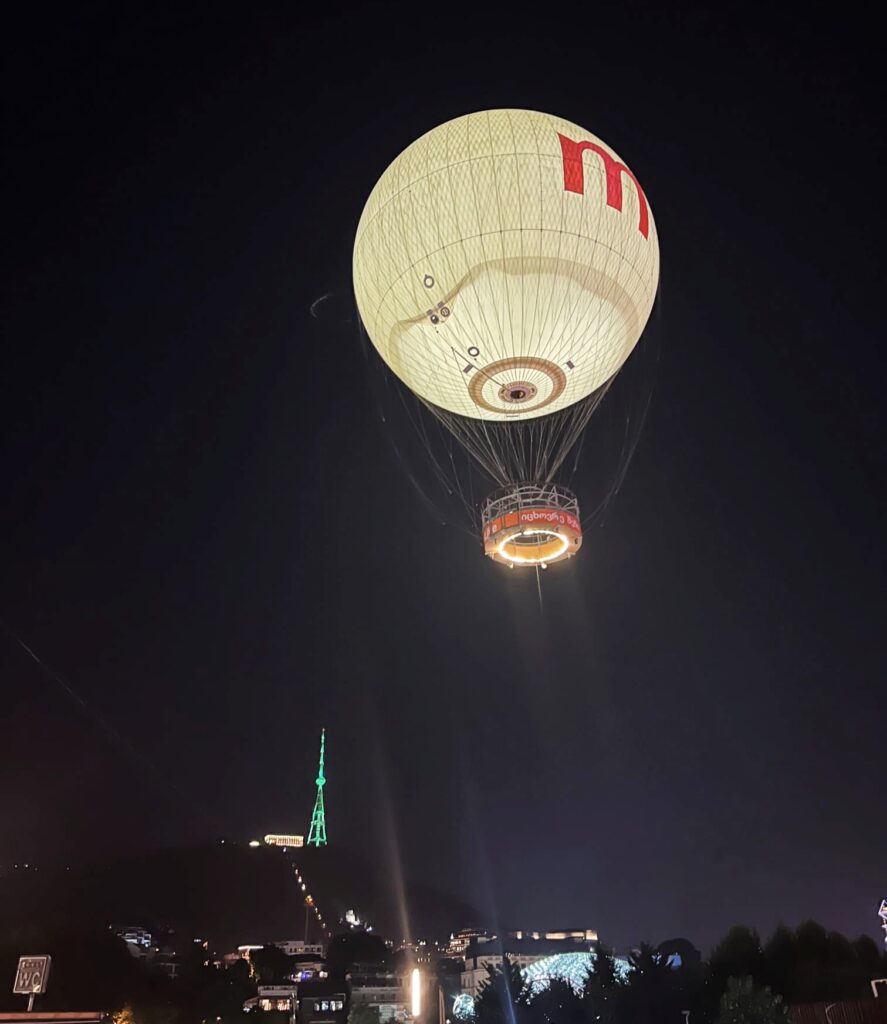 La última gran atracción del parque es el Air Balloon Tbilisi, un globo aerostático que sube y baja continuamente ofreciendo a quién participa en la actividad una gran vista panorámica desde el cielo. Nunca habíamos visto nada así en todo el mundo, así que llamó bastante nuestra atención. Pese a que pensamos en montarnos, finalmente no creímos que mereciese la pena.