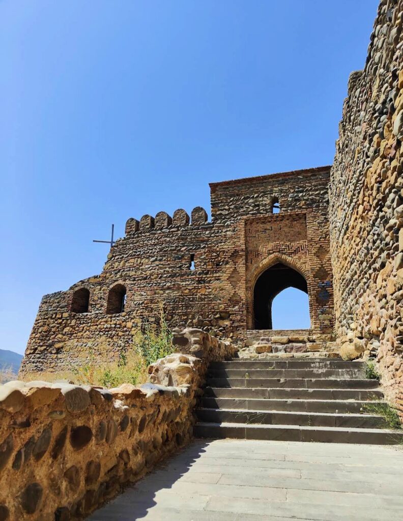 Como decíamos, la Fortaleza de Gori está ubicada en lo alto de una colina a la que puedes llegar andando o en coche. Aunque las ruinas actuales datan principalmente de los siglos XVII y XVIII, se cree que la colina ha estado fortificada desde tiempos antiguos, probablemente desde la época de los romanos o incluso antes. La ubicación estratégica de la fortaleza, en el cruce de importantes rutas comerciales y militares, la convirtió en un punto clave para la defensa de la región de Kartli.