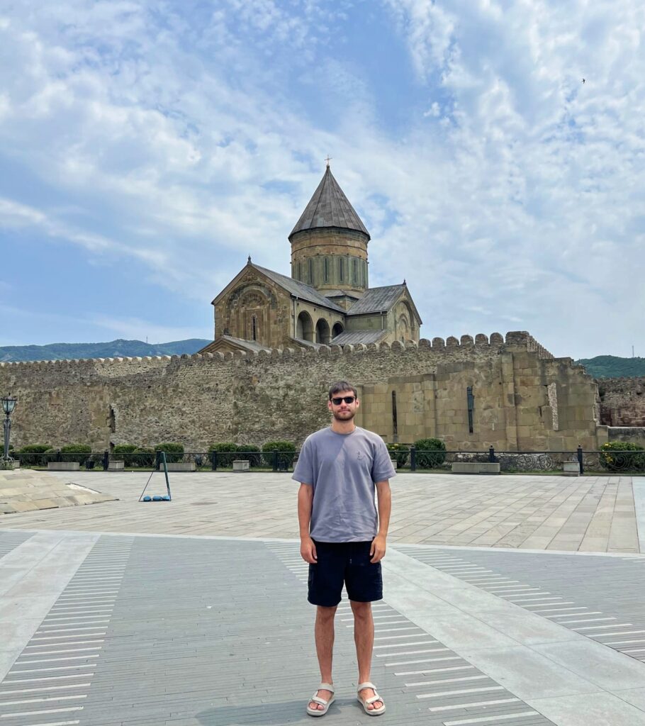 La cruz que atrajo peregrinos, llevando a que finalmente se construyese una iglesia para protegerla y honrarla. Actualmente, sigue siendo un lugar muy visitado por los propios georgianas. Como curiosidad, nos sorprendió que tanto en Georgia como en Armenia la religión estaba profundamente arraigada en todas las generaciones.