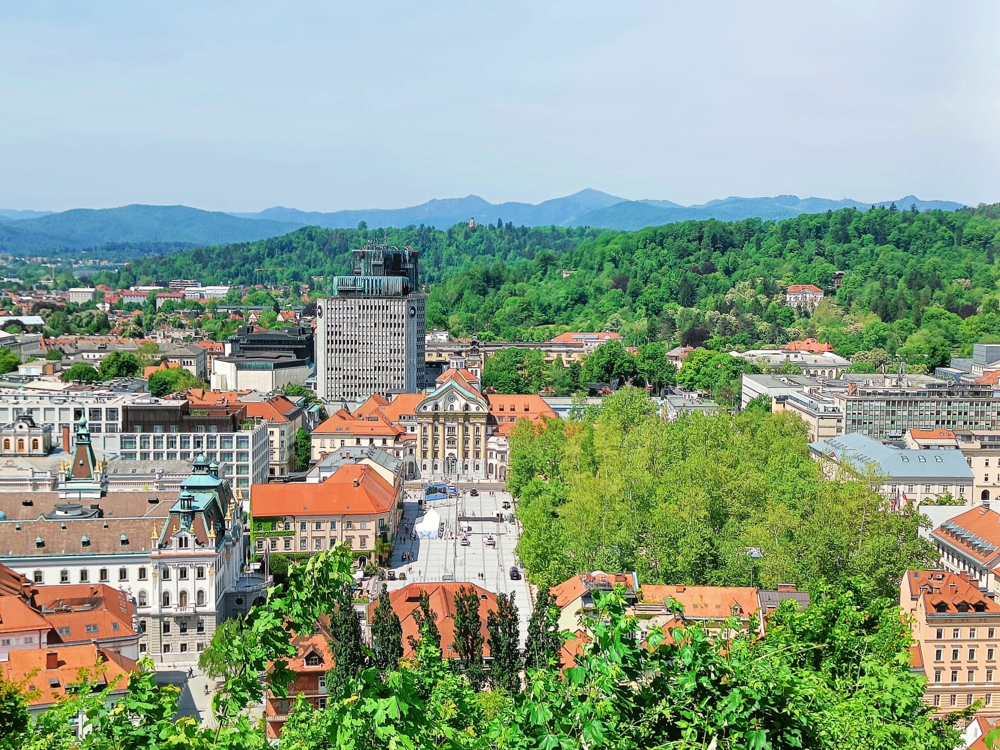 En su azotea hay un restaurante con vistas 360º a la ciudad. El edificio tiene un diseño curioso en su interior, influenciado por el art decó y modernismo, y el restaurante una panorámica excelente de Liubliana. Además, a unos precios muy competitivos. Nosotros nos tomamos un café y entendimos el por qué de los precios, y es que está un poco descuidado. No obstante, en nuestra opinión, un imprescindible que hacer en Liubliana en 1 día.