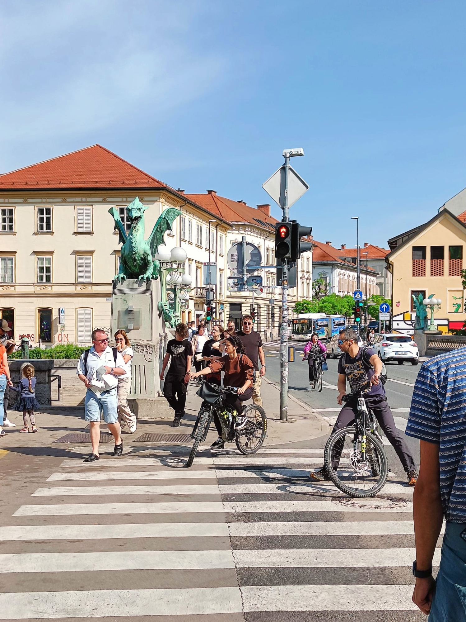 Volvíamos a cruzar el Liublianica, esta vez por el otro puente más famosa de la ciudad: el Puente de los Dragones. Su nombre no engaña, y es que es famoso por las cuatro grandes estatuas de dragones que lo custodian en cada esquina. Por cierto, Liubliana es conocida como la Ciudad del Dragón, así que podéis suponer que el puente es todo un emblema para sus habitantes.