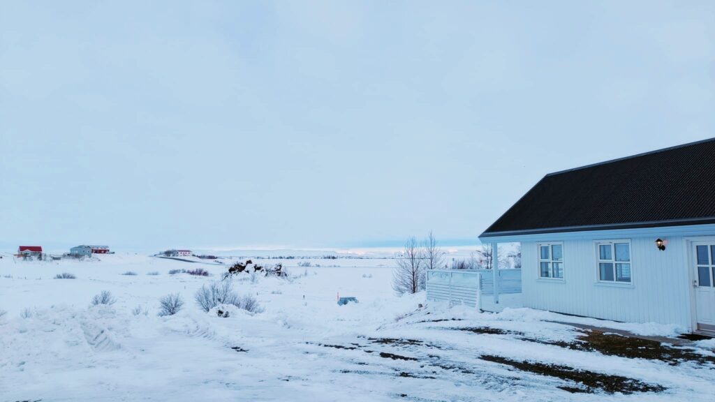 Lo que sí que te contamos es donde pasamos la noche en este tercer día del viaje por el norte de Islandia. Nos quedamos en el alojamiento más caro de toda la ruta, en Skútustadir Guesthouse, ubicado en un pequeño pueblo con el mismo nombre. Reservamos una habitación doble con baño compartido, una familiar para 4 personas y una casa de campo para 4 también. Por todo pagamos 600€, 60€ cada uno.