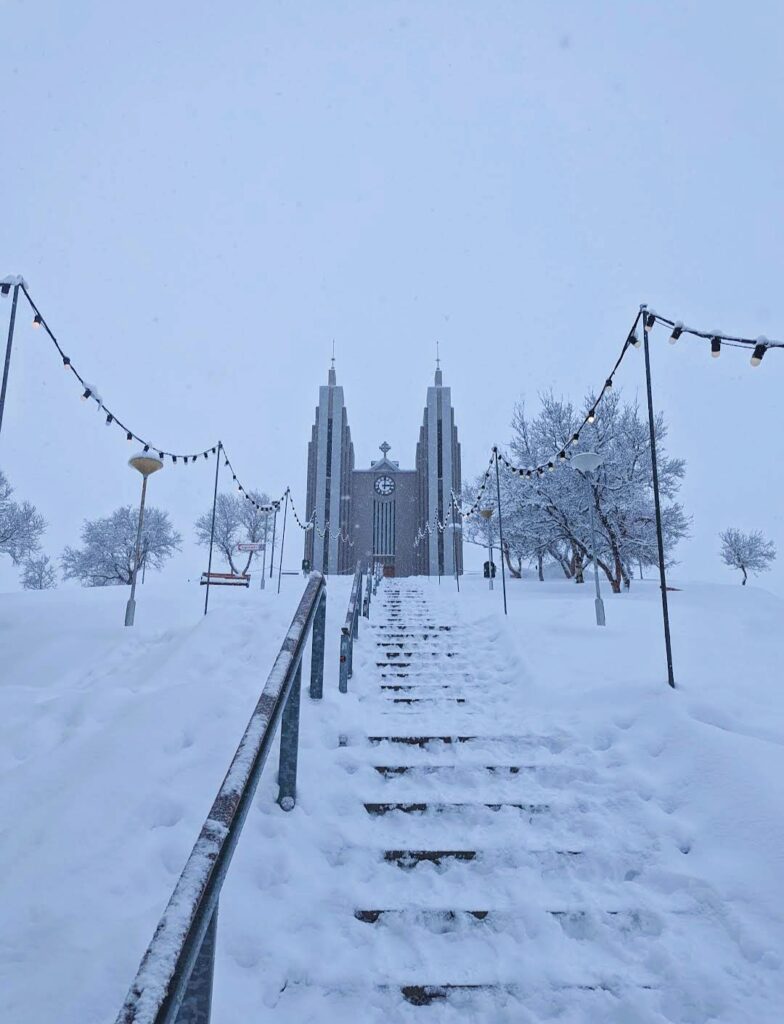 En Akureyri viven alrededor de 18.000 personas, y se ubica justo al final del fiordo. Al igual que en Reikiavik, el atractivo más famoso es su iglesia, Akureyrakirkja, que, de hecho, fue diseñada por el mismo arquitecto. Fue construido en 1940 en lo alto de una colina, lo que hace que sea visible desde casi cualquier punto de la ciudad que esté un poco abierto. Lo más característico es su órgano, de 3.200 tubos.