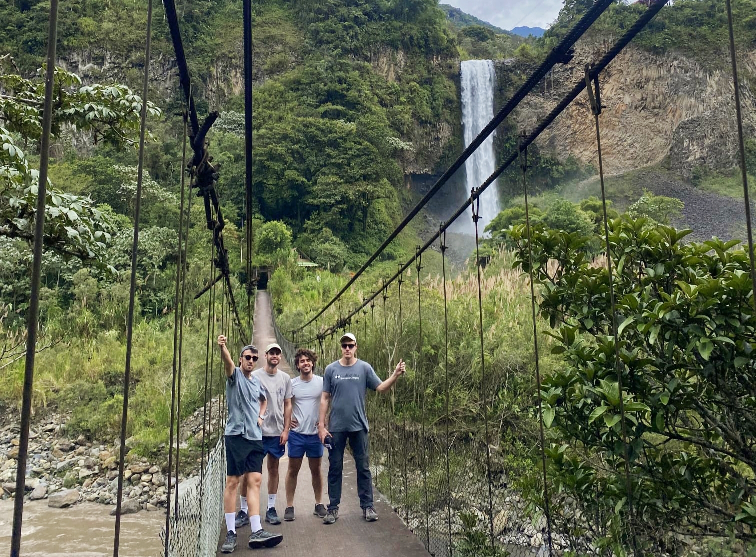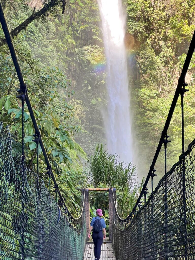 El puente colgante que nos llevaba a la primera cascada de la ruta.