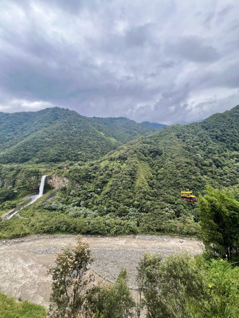 La primera es montar en alguna de las atracciones que hay a lo largo de toda la Ruta de las Cascadas de Baños. En este caso se trata de una tarabita, una especie de teleférico para que te hagas una idea. Es una cabina que cruza el valle a través de un cable.
