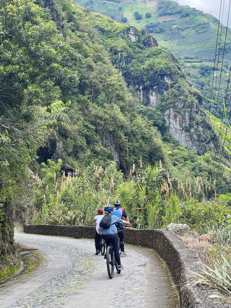 Por último, aunque gran parte del camino es compartido por bicis y coches, no son pocos los túneles del trayecto. Así que, mientras que con coche los pasarás a «oscuras», con la bici podrás ir por el camino alternativo que bordea el río Pastaza, con unas vistas inmejorables al paisaje y sin perderte ningún detalle.