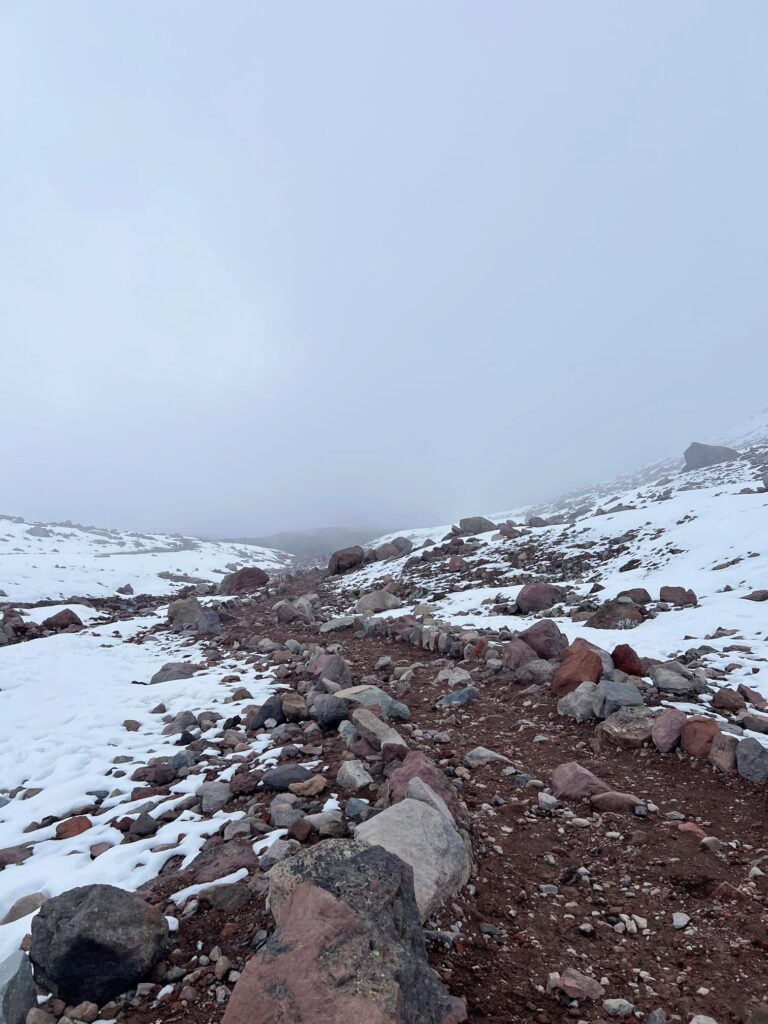 Desde allí se puede continuar con el coche hasta el Refugio Carrel, por un camino bastante mejor que el del Cotopaxi. A partir del refugio ya sí que solo existe la opción de seguir caminando. Lo más habitual es subir hasta el Refugio Edward Whymper, en un tramo de unos 400 metros que fácilmente te llevarán cerca de una hora. Esta parte suele estar cubierta de hielo y nieve, así que mejor ir con calzado adecuado para resbalarse lo menos posible.