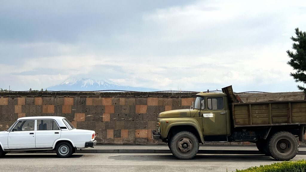Su pasado reciente está marcado por la Unión Soviética, país del que formó parte hasta 1991, cuando obtuvo su independencia. Aún así, las ciudades están profundamente influenciadas por su pasado soviético. Amplias avenidas, edificios de hormigón de estética brutalista y grandes plazas recuerdan esta etapa dentro de la URSS. A diferencia de su vecino Georgia, la relación de Armenia con Rusia ha sido tradicionalmente muy buena. Como curiosidad, algo que nos llamó muchísimo la atención comparando ambos países es que Armenia estaba lleno de Ladas, coche de fabricación rusa, marca que prácticamente no vimos en Georgia.