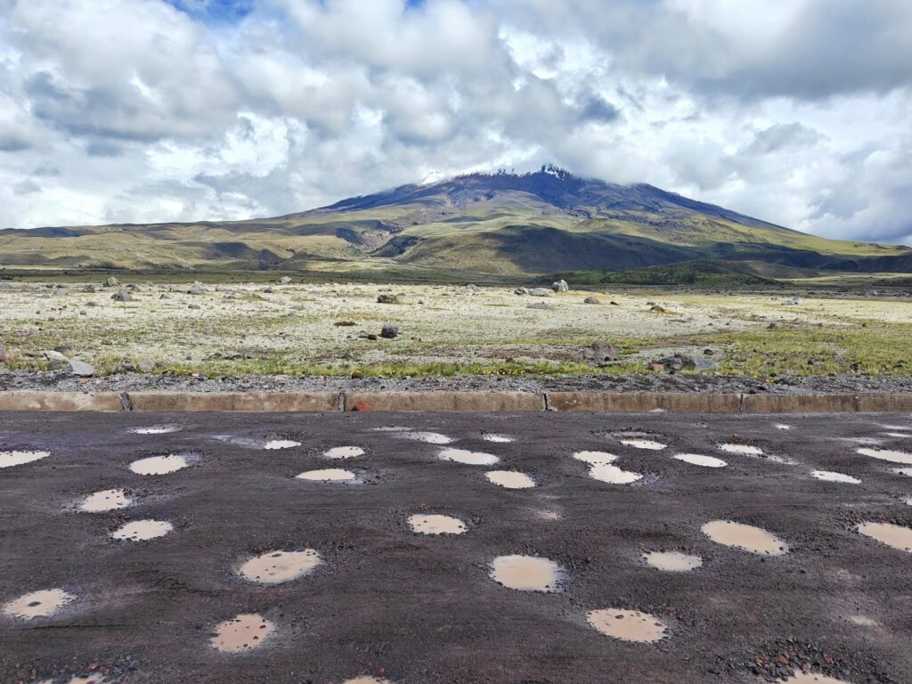 El estado de la carretera «buena» del Cotopaxi, llena de agujeros.