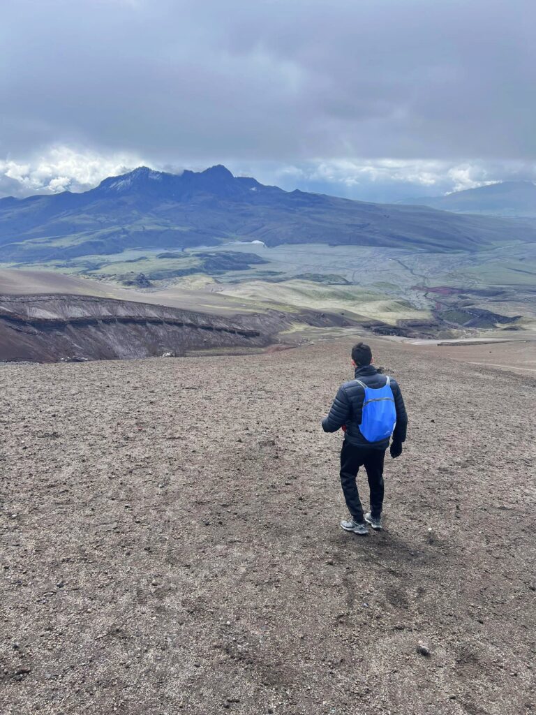 Desde el parking, lo más habitual es caminar los 300 metros que lo separan del Refugio Jose Rivas, a 4.864 metros. Por cierto, Jose Rivas fue un alpinista ecuatoriano destacado durante el siglo XX. Para hacerlo, tienes dos alternativas: el camino de la izquierda, que serpentea haciendo la subida mucho más progresiva, o tirar de frente, que es básicamente subir por la ladera del volcán a pelo. El primero es más largo y menos duro, y el segundo al revés, más corto pero más duro.