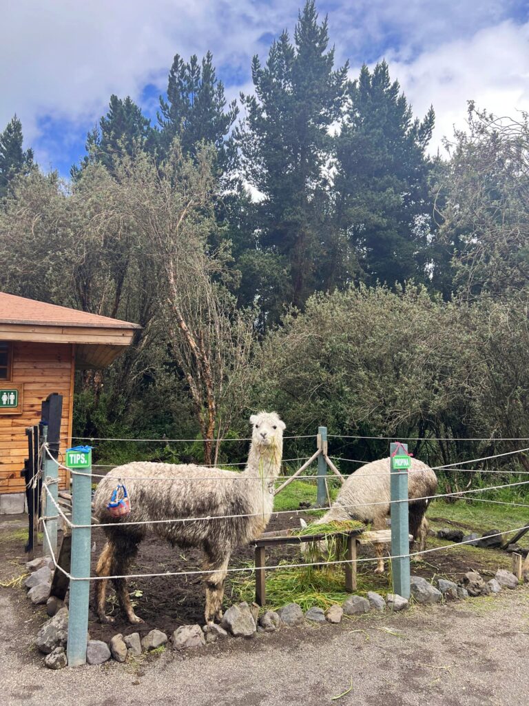 En la entrada del centro hay además un par de llamas, todo un emblema en Ecuador. Si has visto una foto de un volcán con vicuñas en libertad alrededor, es en el Chimborazo, donde hay un área protegida. Si las ves en el Cotopaxi, te aseguramos que en libertad no están.